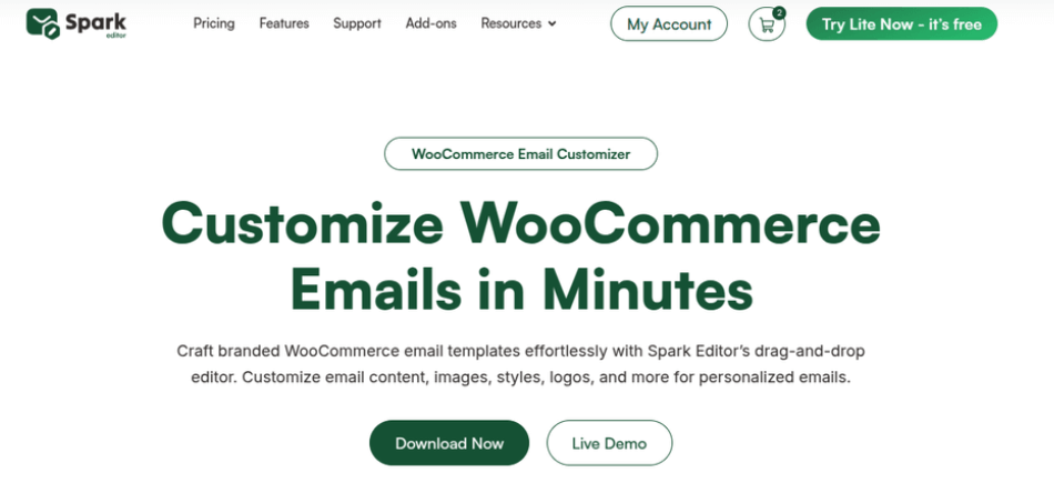 Spark Email Editor is one of the most intuitive WooCommerce email customizer plugins available, designed to transform dull, default WooCommerce emails into branded, conversion-friendly communications. Its drag-and-drop email builder makes it easy for store owners—without any coding skills—to create professional, responsive templates that match their brand identity.